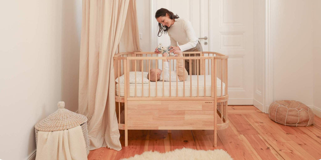Ausgewähltes Naturholz, hochwertige Textilien & präzise Verarbeitung. Mitwachsendes Design & beständige Materialien für eine lange Nutzungsdauer.